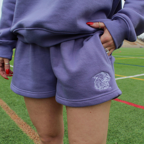 From K-State Campus to K-State Games this sweat set is perfect paired together or worn separately throughout the seasons. Featuring a purple fleece mock neck sweater with KSU embroidery on chest. Shorts offer a drawstring, elastic waistband with side pockets and Ratty Cat embroidered on left hem.
