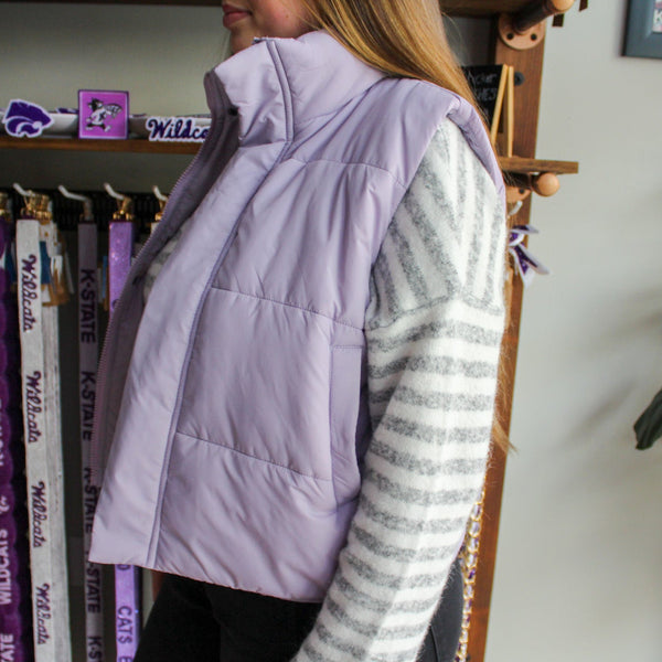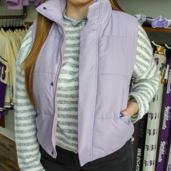 Featuring a medium weight puffer vest with full front zipper and button closure. Offering two side pockets and elastic drawstring waist.